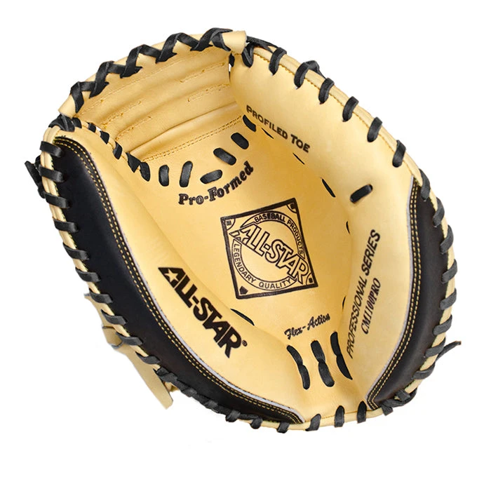 The PRO-ADVANCED Catching mitts feature Japanese tanned US steer hide and heavy duty rawhide laces. The popular black/tan leather combination gives these mitts proper support and extended life. These mitts have extended pockets as well as adjustable Velcro openings. Great for advanced catchers in high school and college. BREAKING IN YOUR MITT- This is a stiffer mitt intended for the serious player and will take a little work, but you will be rewarded for your effort