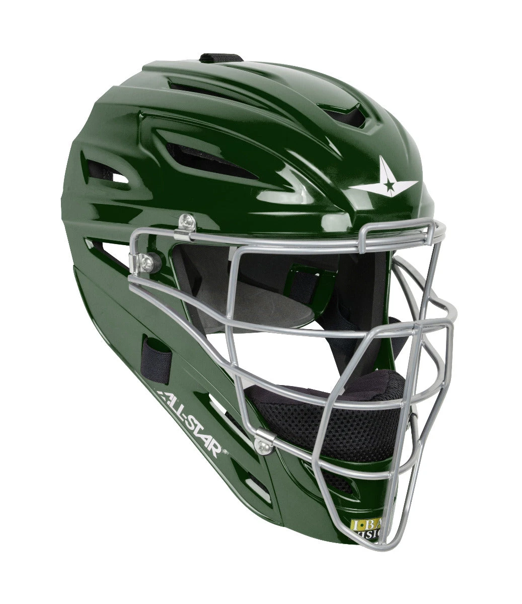 ” The System Seven™ MVP2500 series of masks are recommended for college though youth catchers. This mask features an I-BAR VISION™ steel cage, a high impact resistant ABS plastic shell with increased forehead thickness, a backplate designed to keep the snaps on, and a breathable 3D mesh padding liner.