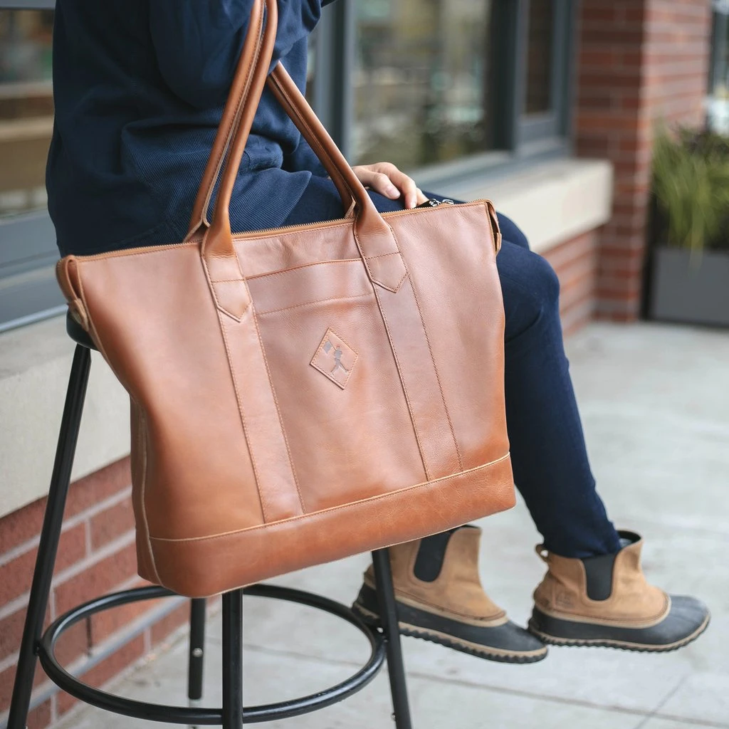 A designer glove leather tote with enough fashion for the runway and enough function for the ballpark. Featuring an insulated cup holder and multiple interior pockets.