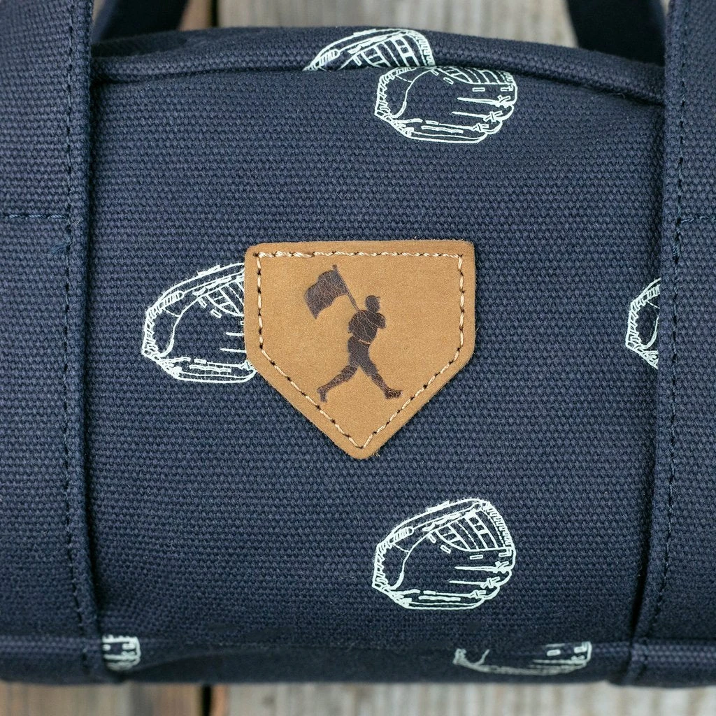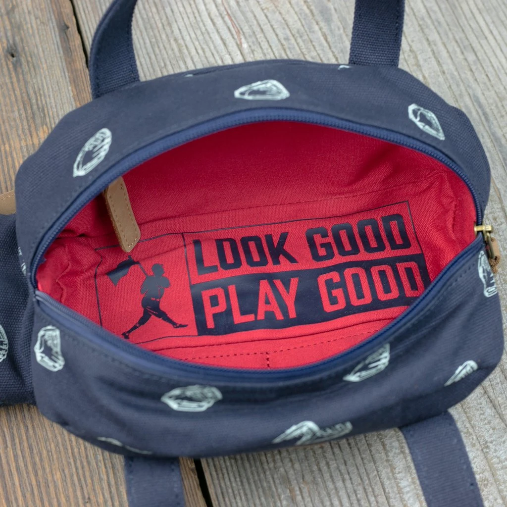 – Exterior features a screen printed baseball gloves monogram pattern