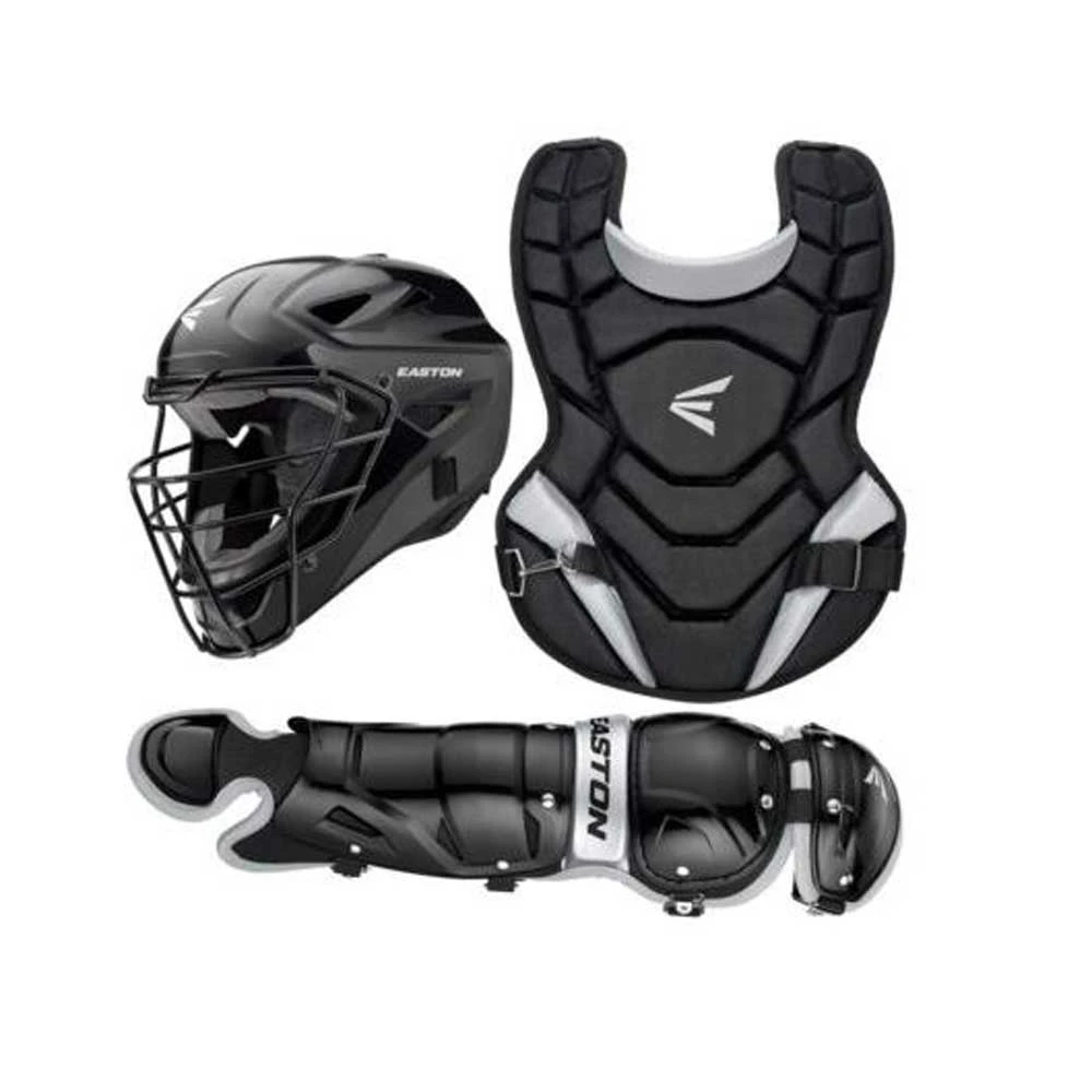 Easton’s® second-generation Black Magic 2.0 Box Set is perfect for the youth or beginner catcher. This Catcher’s set includes a hockey-style ABS Thermoplastic Shell Helmet with steel cage and dual-density foam, Chest Protector with foam padding for protection and Leg Guards with double-knee protection. Black only.