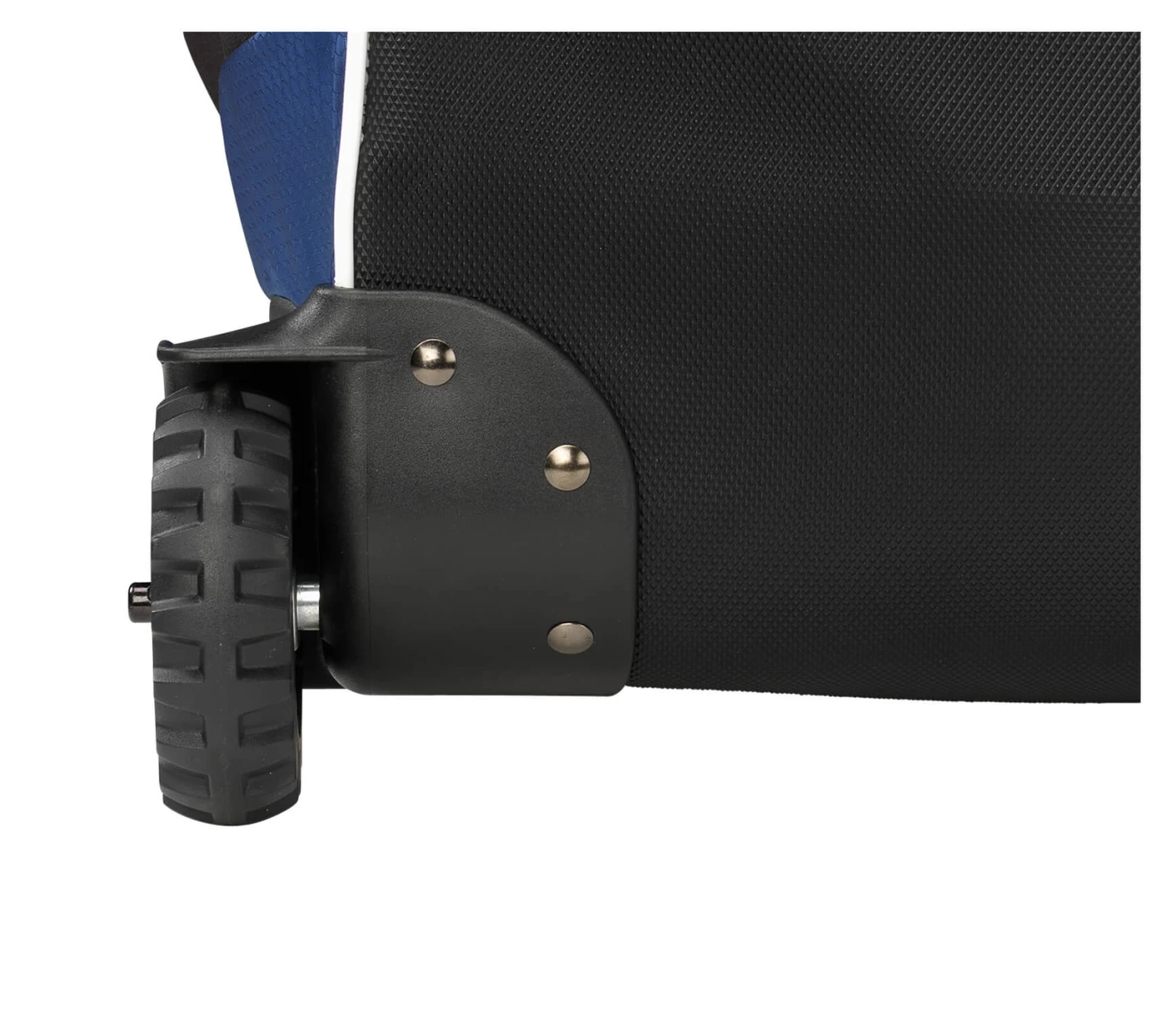 The ultimate wheeled equipment bag for the baseball/softball player. Wide set tank wheels with axel and full bottom rails provide strength and durability. Fence hooks integrated into bottom rail for dugout functionality. Vented pockets minimize odor and allow equipment to dry faster. #10 lockable zippers for maximum durability to prevent blowouts. Separate bat compartment will easily fit 4 bats. Felt lined pocket on top panel for personal items. Separate insulated pocket on top panel to keep food or drinks cold. All straps are reinforced to stabilize load disbursement. Padded handle for comfort and easy transportation