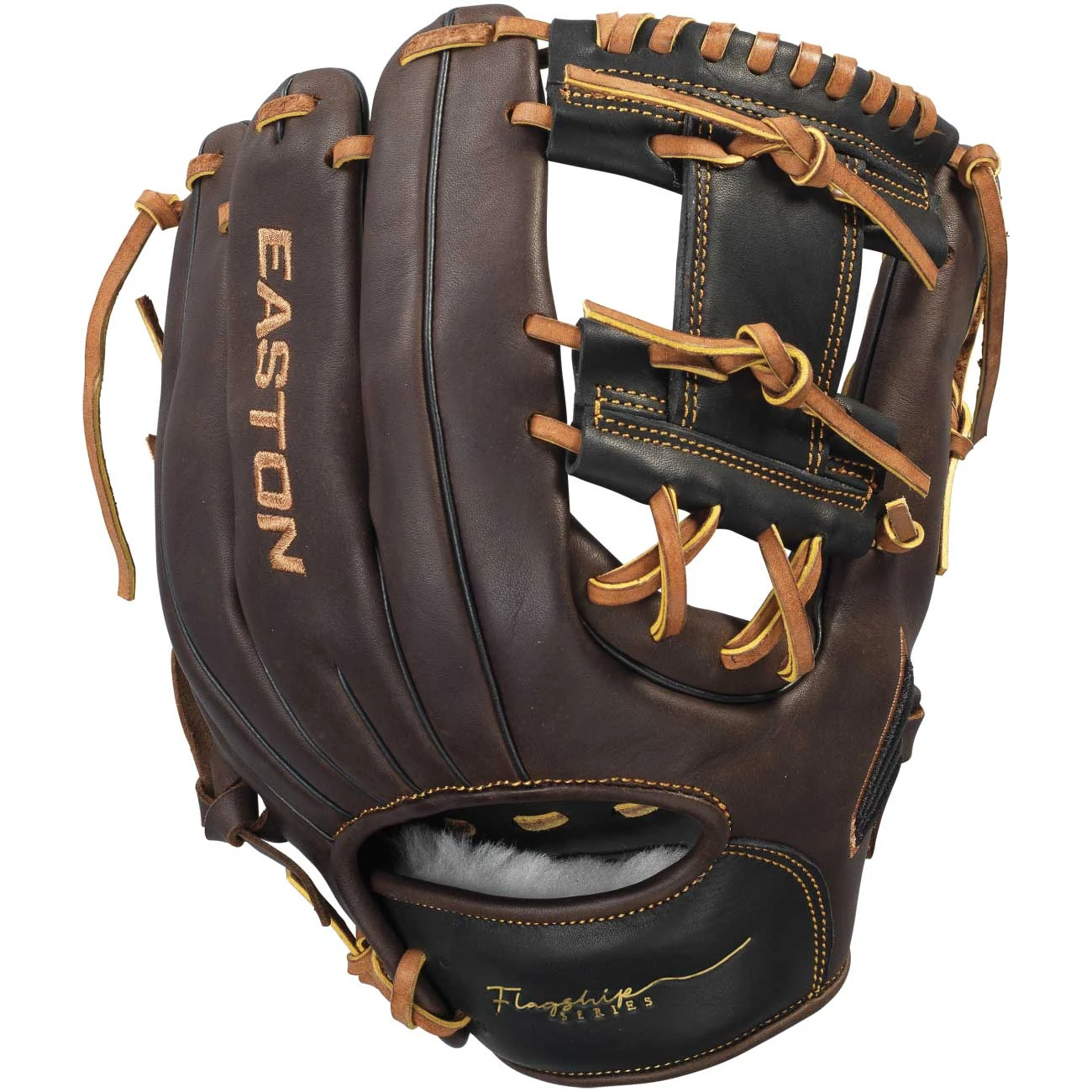 Easton’s Flagship Series was built for performance at every position. The Flagship Series is handcrafted with Diamond Pro Steer™ leather and an oiled classic cowhide palm and finger lining for improved feel. These gloves are built with a professional grade rawhide lace, tested to a tensile strength of 100 lbs. The rolled leather welting and Steerhide binding provide for a durable shape and a faster break-in time. The luxurious wool shearling fur wrist liner provides players with pro-grade comfort and feel.