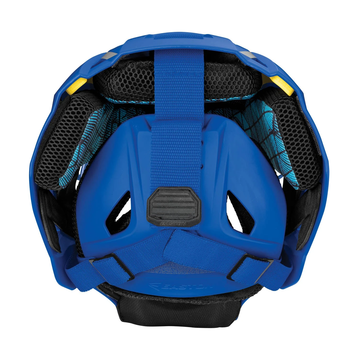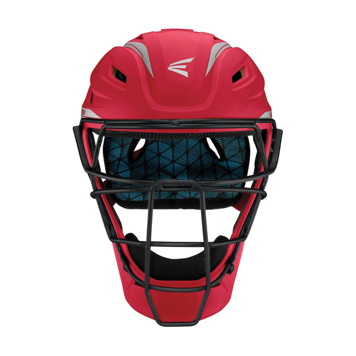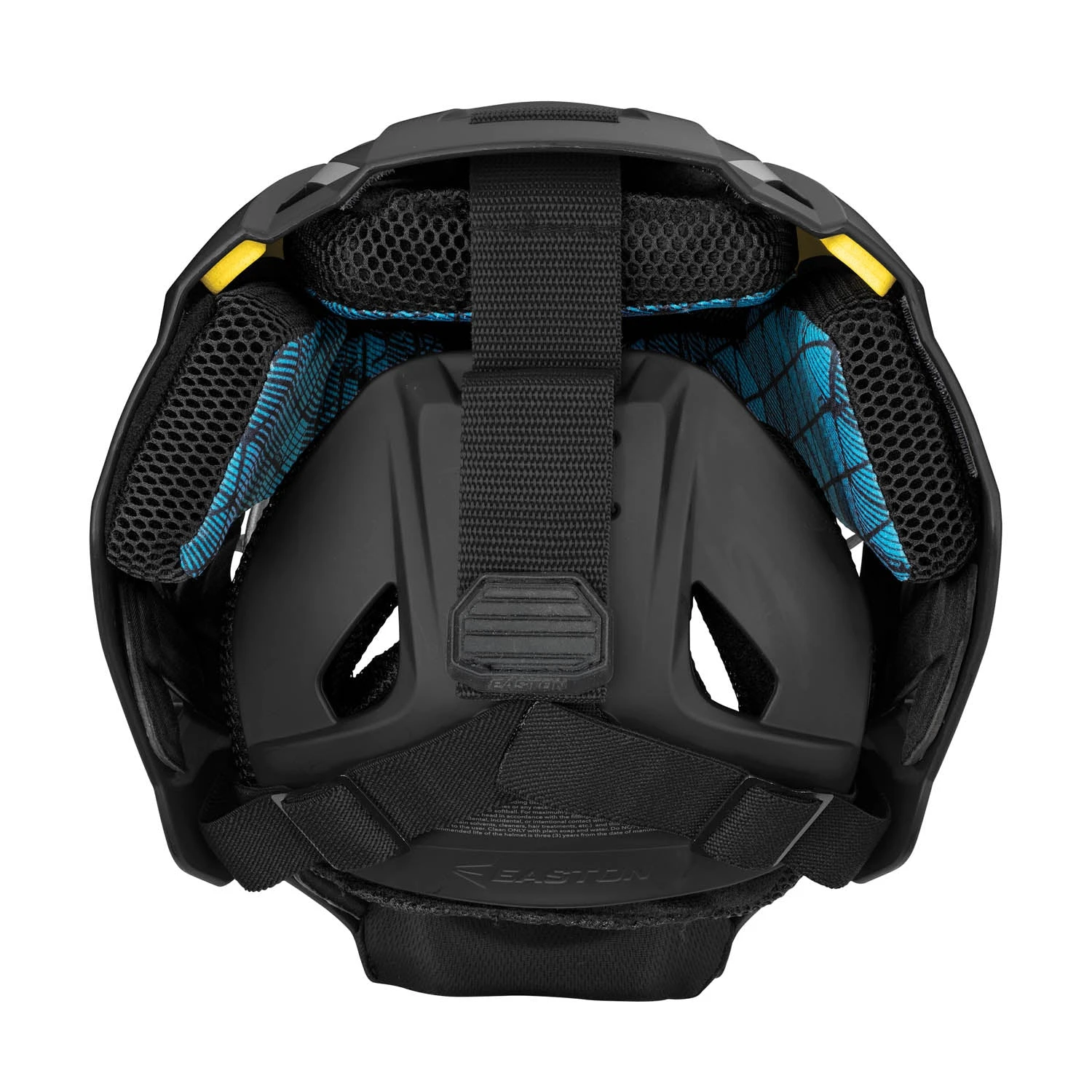 Protect the plate like a Pro. The Pro X Catcher’s Helmet is the most advanced Easton has ever introduced, designed with a black steel cage with a flat middle bar for increased visibility and a streamlined, ergonomic matte two-tone ABS plastic shell with strategic airflow vents to keep you cool behind the plate. The helmet features plush wrapped padding with breathable air mesh and BioDri moisture wicking fabric for added comfort, and Poron XRD technology in the upper crown to absorb shock on impact. The ergonomic chin cup design provides a better fit and allows for improved player communication, and the forehead, crown, rear and chin pads are removable and washable. and the forehead, crown, rear and chin pads are removable and washable. The Pro X helmet features an extra wide rear top strap for secure locked-in adjustment for a better fit, and meets the NOCSAE standard for all levels of play.