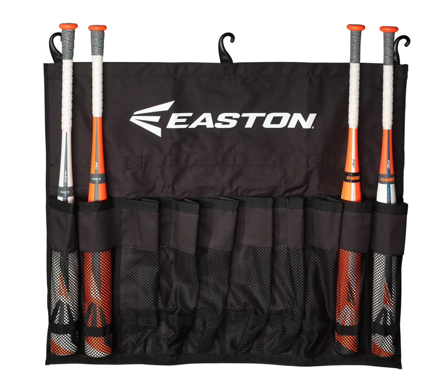 The easton team hanging bat bag features strong nylon straps carry handle and rolls up for easy carrying. Construction is 600d polyester. Holds 10 bats