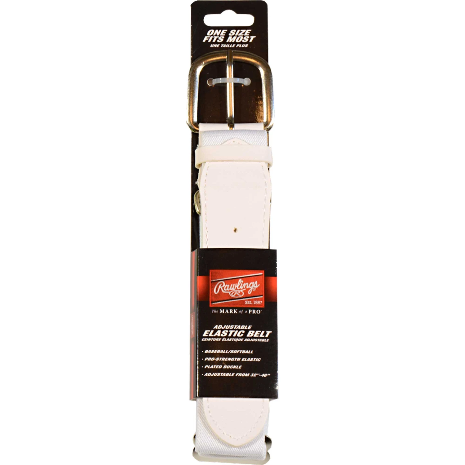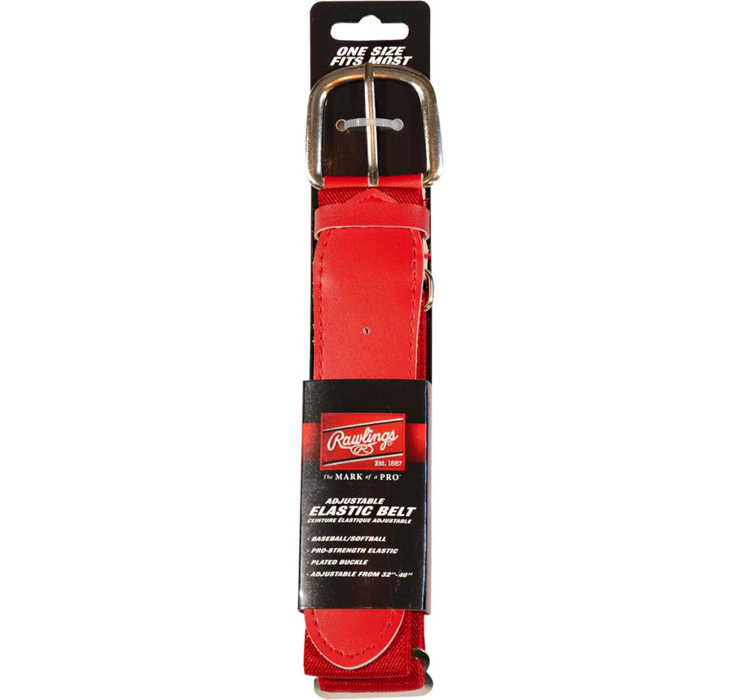 This Baseball Belt features a nickel plated buckle, elastic construction and TPR belt end for excellent durability in high-abrasion areas. The fully-adjustable design provides an ideal fit. The Rawlings oval R logo on the front tab adds style.